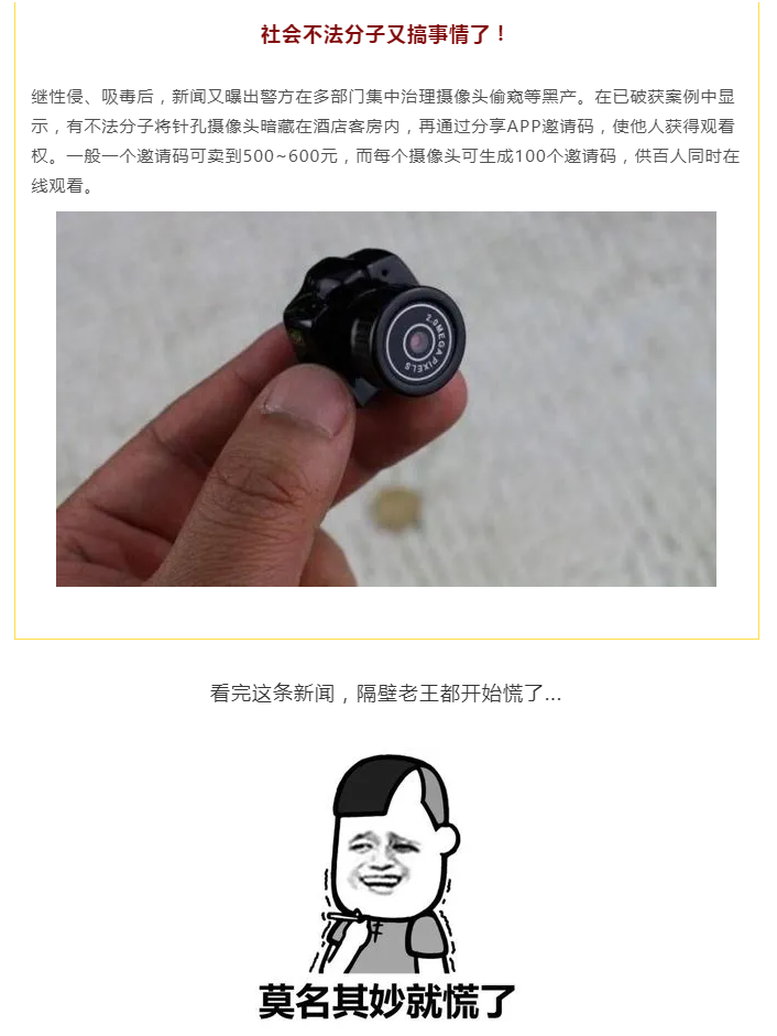 可怕!针孔摄像头可让百人在线观看!小心这些地方可能隐藏摄像头......