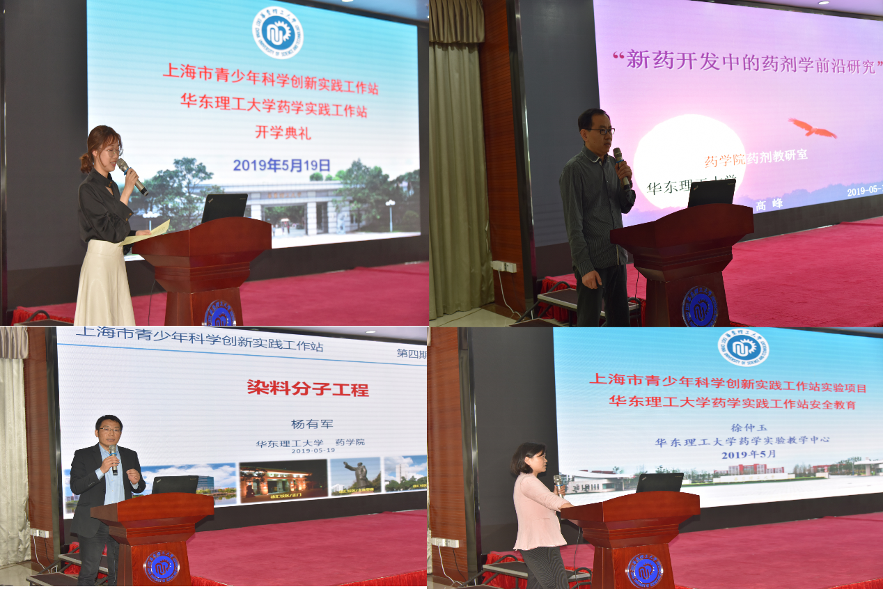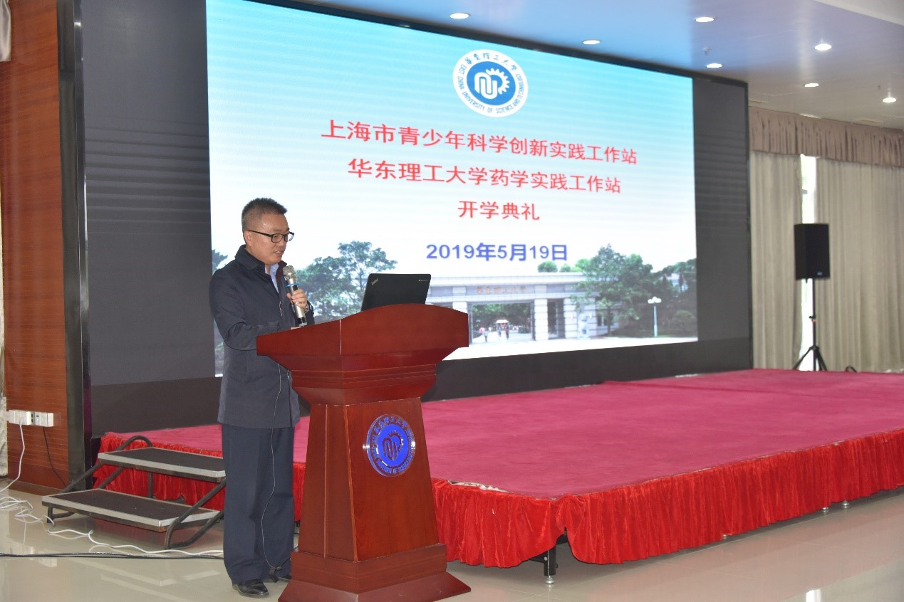 为深入推进高中学生综合素质评价改革工作的开展,培育金字塔顶部的青少年科技创新人才,华东理工大学药学院在上海市教委、科委支持下,与上海中学、位育中学、西南位育中学、复旦实验中学等四个青少年创新实践点合作,于2019年5月19日在华东理工大学奉贤校区通海厅成功举办了第四期上海市青少年科学创新实践工作站、华东理工大学药学实践工作站开学典礼。