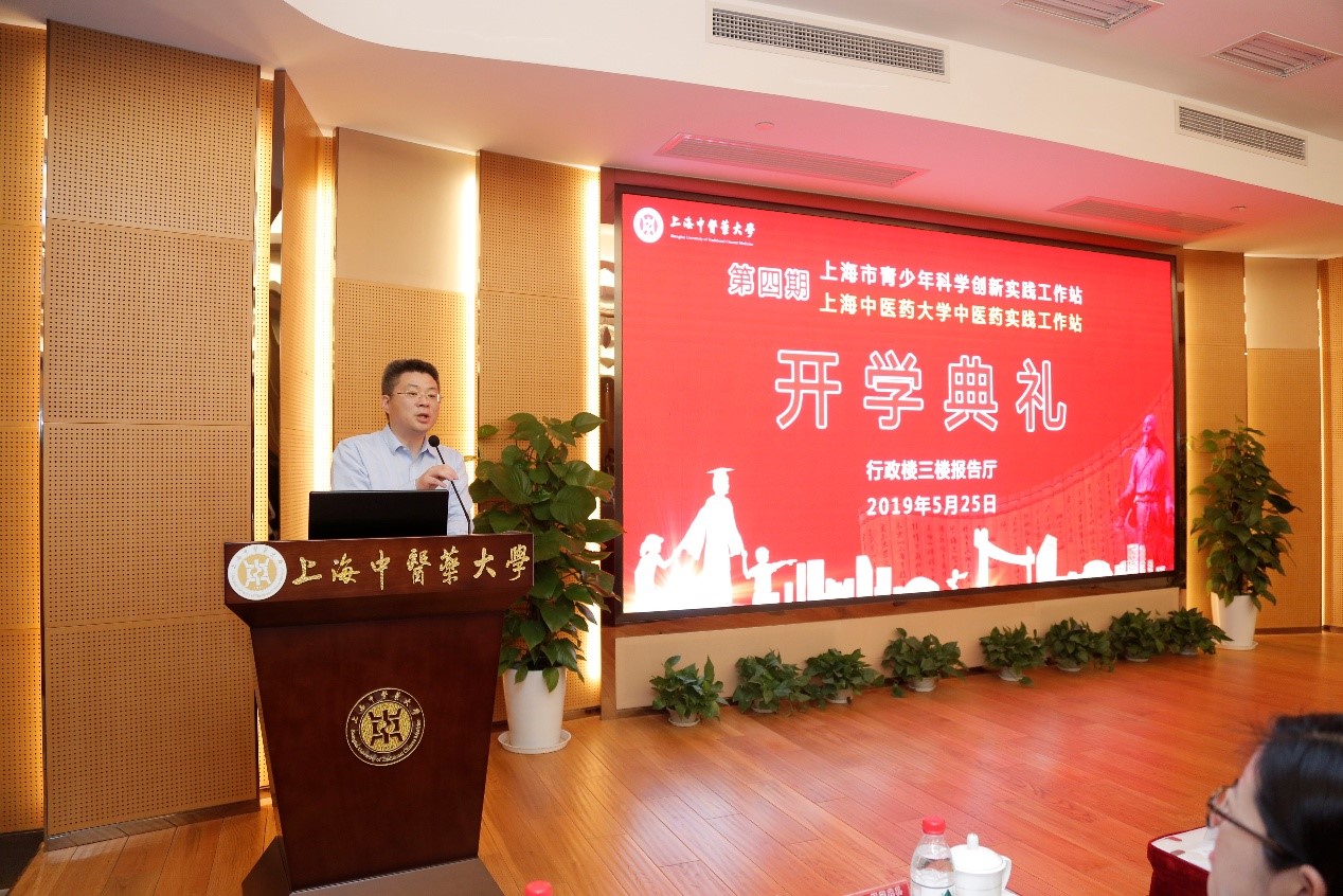 2019年5月25日上午,上海市首批25家青少年科学创新实践工作站之一的上海中医药大学中医药科学创新实践工作站第四期开学典礼隆重举行。中国科学院院士林国强、复旦大学药学院副院长王建新、上海中医药大学中医药实践工作站站长李赣、上海中医药大学教学实验中心主任张彤、各实践点负责人及指导教师,以及120名进入工作站的高一学生参加了开学典礼。