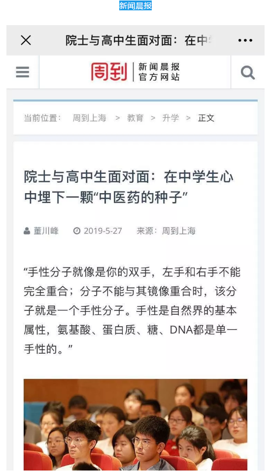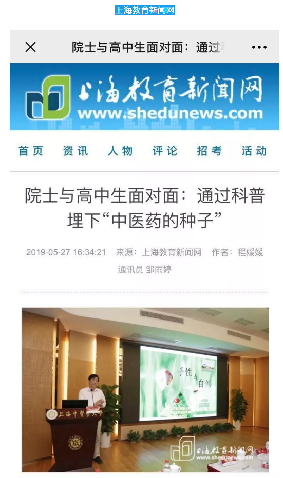 媒体关注 | 院士与高中生面对面!上海中医药大学中医药科学创新实践工作站第四期开学典礼举行~