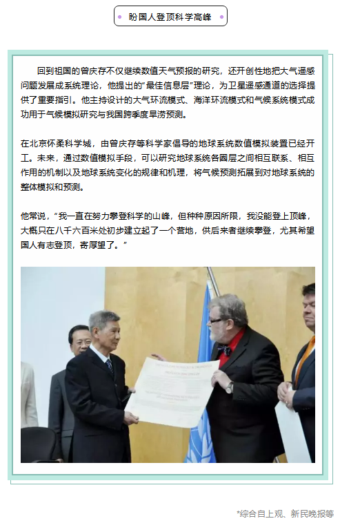国家最高科学技术奖 :曾庆存:摘得全球气象界最高荣誉 让天气预报告别“看天”